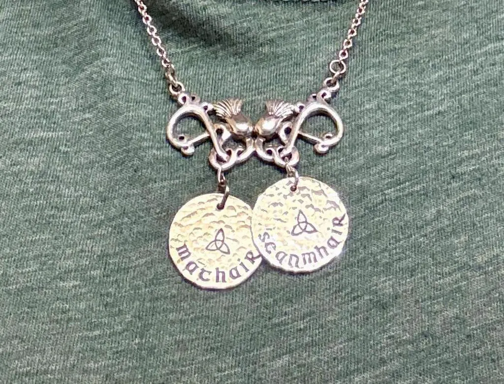 This necklace is carefully hand stamped with seanmhair, meaning grandmother in Scottish Gaelic. It is available in sterling silver, rose gold filled, or gold filled and is accompanied by a freshwater pearl if you choose.
