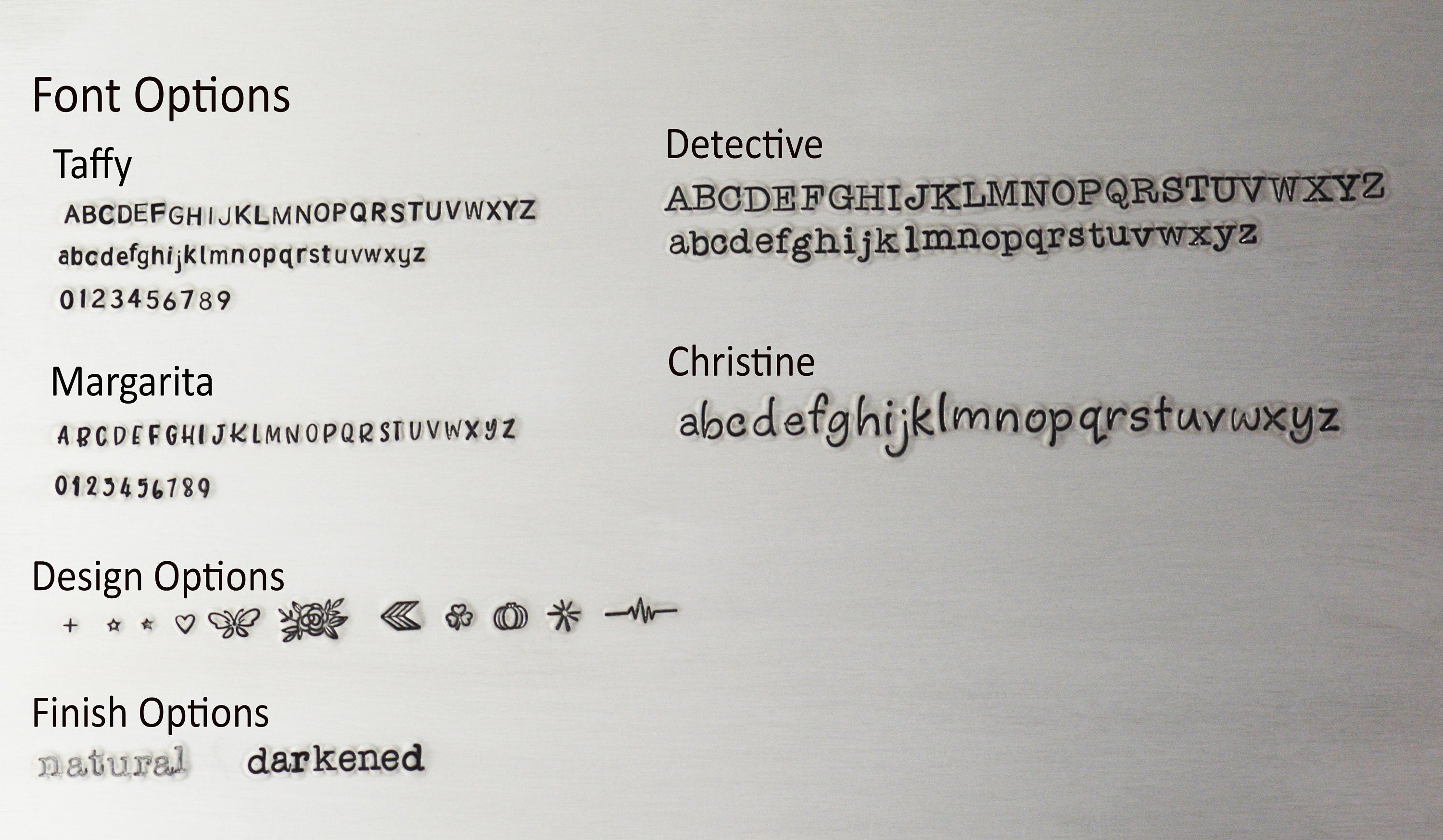 •See last photo for font, design, and finish options