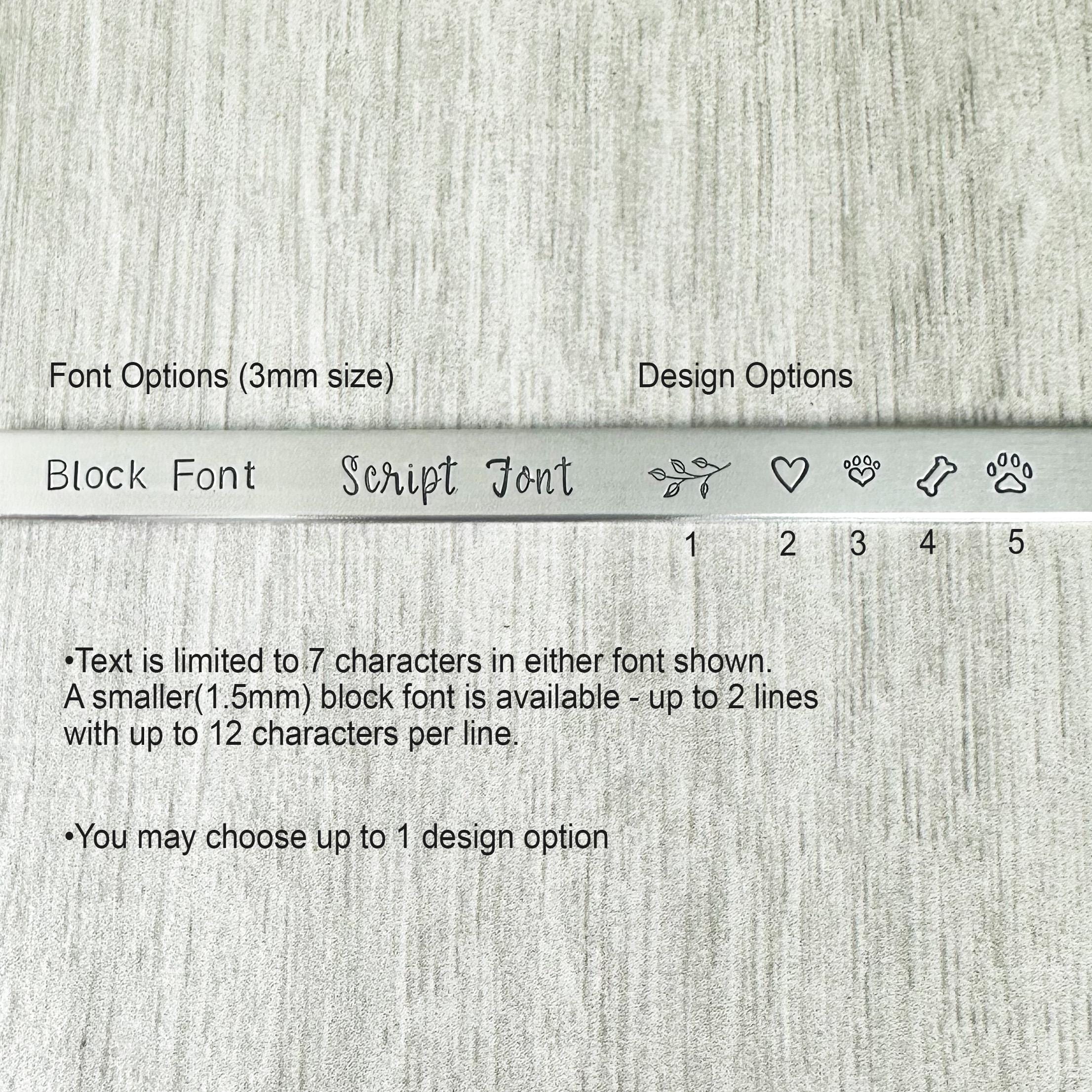 Hand stamping is a very different process than traditional engraving. Hand stamping is done entirely by hand, with a hammer and steel stamp. The stamps have letters or designs carved on the end and each is individually stamped into the metal with a hammer. Every item is carefully handcrafted, so certain variations are to be expected. This adds to the one of a kind nature and overall quality of each piece I create.