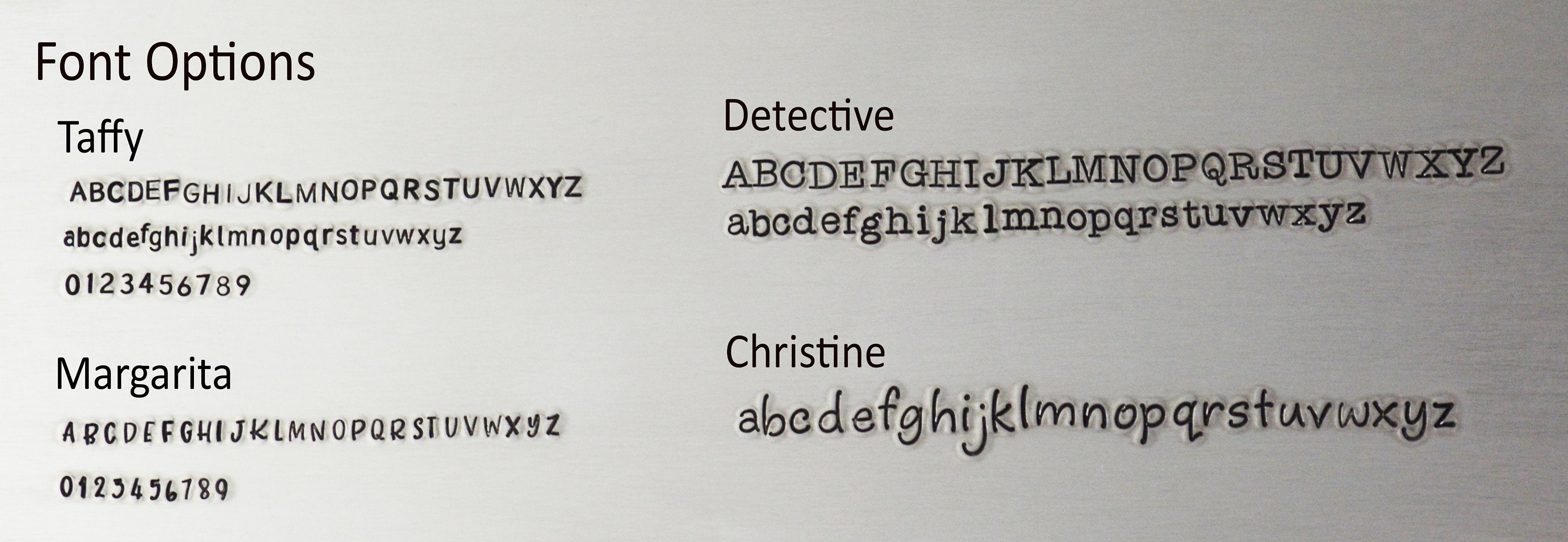 Hand stamping is a very different process than traditional engraving. Hand stamping is done entirely by hand, with a hammer and steel stamp. The stamps have letters or designs carved on the end and each is individually stamped into the metal with a hammer. Every item is carefully handcrafted, so certain variations are to be expected. This adds to the one of a kind nature and overall quality of each piece I create.