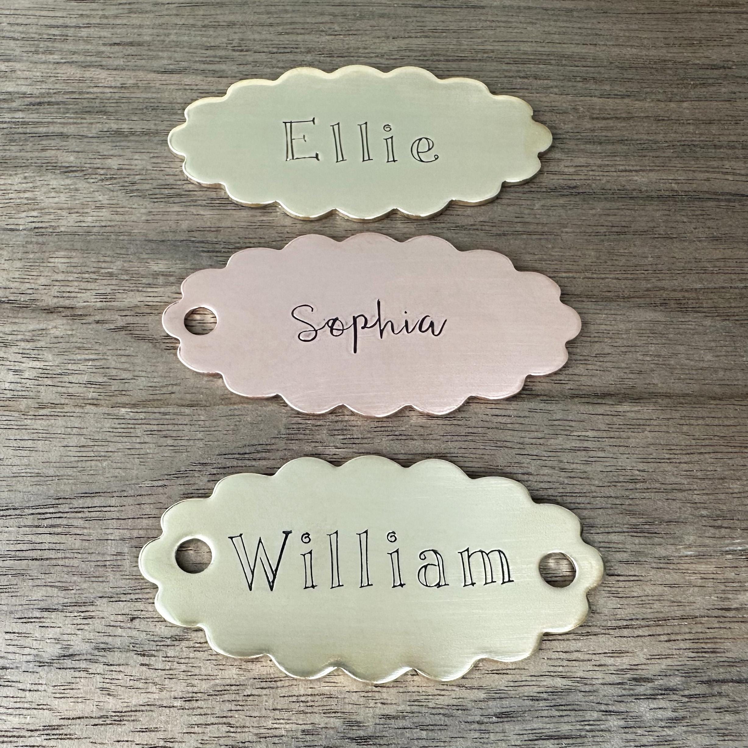 Hand stamping is a very different process than traditional engraving. Hand stamping is done entirely by hand, with a hammer and steel stamp. The stamps have letters or designs carved on the end and each is individually stamped into the metal with a hammer. Every item is carefully handcrafted, so certain variations are to be expected. This adds to the one of a kind nature and overall quality of each piece I create.